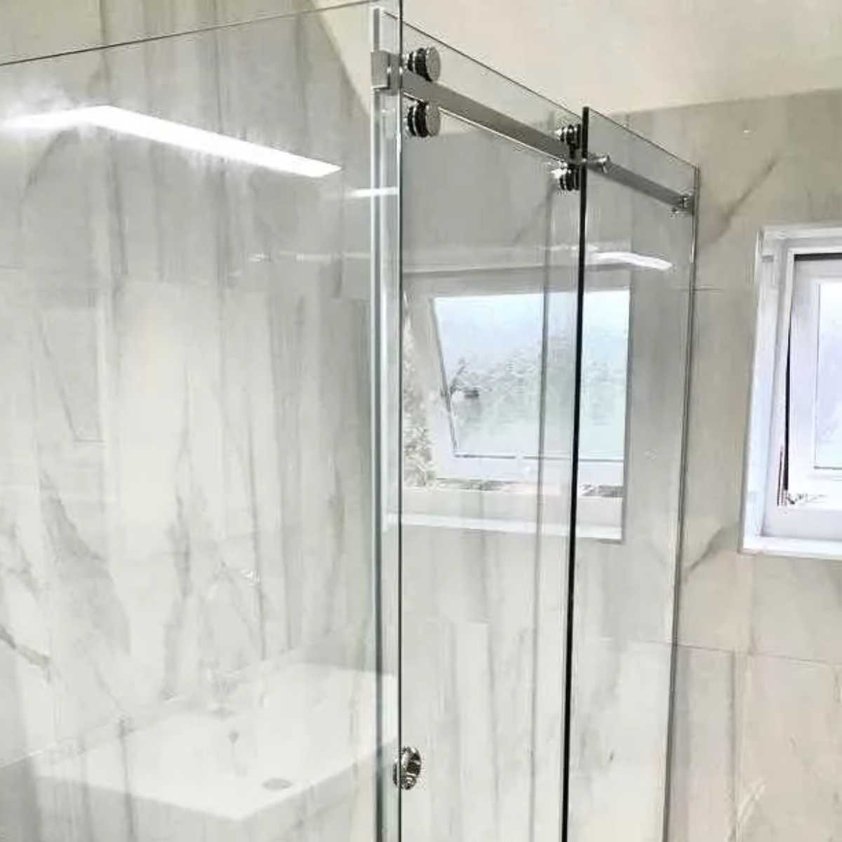 This shower door is a great addition to any bathroom. It is made of durable 5/16" tempered glass that resists shattering and water spots. It has a sleek chrome or black frame that complements any decor. It features a sliding mechanism that allows for easy opening and closing. It also has a clear seal strip that prevents leaks and drips. This shower door is easy to install and comes with all the necessary hardware.